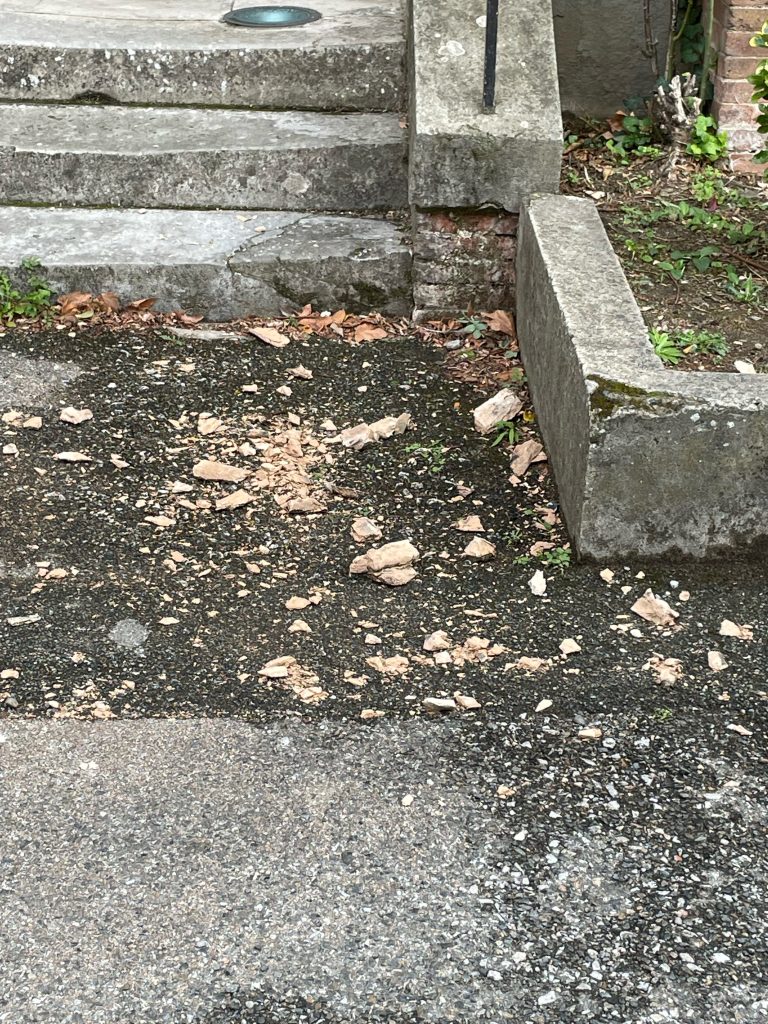 Aujourd’hui, la rosace de la façade côté rue est en danger : des pans de la structure en pierre sont déjà tombés. Un filet de sécurité a été installé.